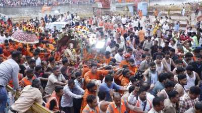 भोपाल : महाकालेश्वर की श्रावण/भाद्रपद माह में निकलने वाली सवारी के क्रम में तीसरे सोमवार 28 जुलाई को भगवान महाकालेश्वर चंद्रमौलेश्वर के रूप में पालकी में, हाथी पर मनमहेश के...