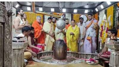 उज्जैन । विश्व प्रसिद्ध श्री महाकालेश्वर मंदिर में आज चैत्र कृष्ण पक्ष की अमावस्या तिथि पर सोमवार तड़के भस्म आरती के दौरान चार बजे मंदिर के पट खुलते ही पण्डे...