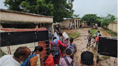 सड़क से लेकर कक्षा तक फैला पानी, अभिभावक बोले- बच्चों की सुरक्षा सबसे पहले