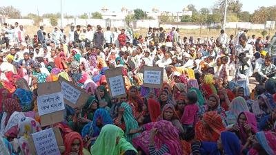 जमीन के बदले उचित मुआवजे के लिए कलेक्टर कार्यालय का घेराव