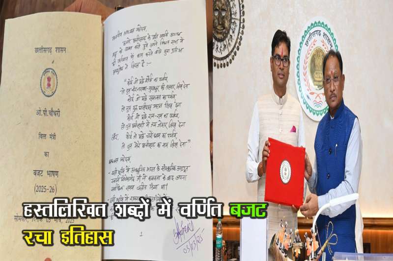 रायपुर: छत्तीसगढ़ की साय सरकार ने आज अपना दूसरा और राज्य का 25वां बजट पेश किया. इस बजट में नौकरी, शिक्षा समेत महिलाओं के लिए कई बड़े ऐलान किए गए हैं. छत्तीसगढ़ के वित्त मंत्री ओपी चौधरी ने सोमवार को सदन में बजट पेश किया. बजट की जानकारी देते हुए वित्त मंत्री ओपी चौधरी ने कहा कि विष्णुदेव साय की सरकार नेक नीयत और पूरी तत्परता से काम कर रही है. इसके साथ ही उन्होंने कहा कि इस बार मैंने बजट अपने हाथ से लिखा है. बजट पेश करते हुए वित्त मंत्री ओपी चौधरी ने कहा कि- कोई वीरता का पर्याय पूछे तो आप गुंडाधुर की तलवार लिख देना. कोई समानता का पर्याय पूछे तो आप गुरु घासीदास महान लिख देना। कोई राम-राम का पर्याय पूछे तो आप छत्तीसगढ़ी में जय जोहार लिख देना. कोई चारों धाम का पर्याय पूछे तो आप मेरे छत्तीसगढ़ का नाम लिख देना। वित्त मंत्री ओपी चौधरी ने हस्तलिखित बजट पेश किया। यह पहला मौका है जब राज्य में कंप्यूटर से टाइप किए गए बजट की जगह खुद वित्त मंत्री द्वारा लिखा गया बजट सदन में पेश किया गया. यह बजट 100 पन्नों का है, जो पूरी तरह से हस्तलिखित है।
