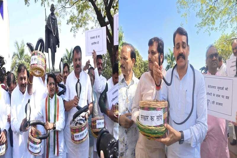 कांग्रेस का अनोखा विरोध प्रदर्शन: सांप की टोकरी संग पहुंचे विधानसभा, बताया- ये है कारण...