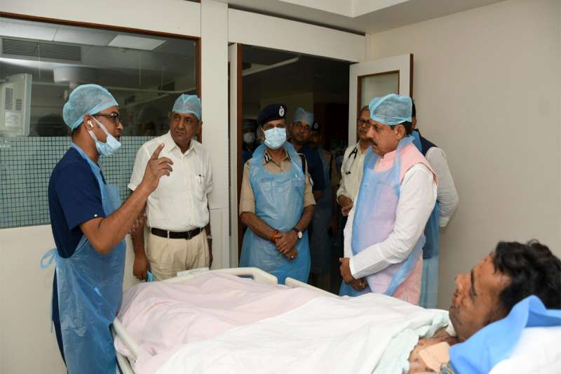 मुख्यमंत्री डॉ. यादव ने बाणगंगा चौराहे पर विगत दिवस हुई सड़क दुर्घटना में गंभीर रूप से घायल श्री जय प्रकाश लखेरा से भी अस्पताल में मुलाकात की। उन्होंने श्री लखेरा को आश्वस्त किया कि उनका समुचित इलाज कराया जाएगा। मुख्यमंत्री डॉ. यादव ने श्री लखेरा के परिजनों को भी आश्वस्त किया कि इलाज में कोई कमी नहीं आने दी जाएगी।