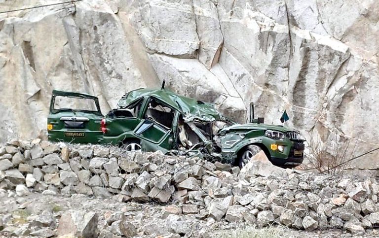 लद्दाख: केंद्रशासित प्रदेश लद्दाख के दुरबुक में सैन्य काफिले के एक वाहन पर विशाल चट्टान गिर जाने से उसमें सवार एक लेफ्टिनेंट कर्नल और एक जवान की मौत हो गई, जबकि मेजर रैंक के दो अधिकारी और एक कैप्टन गंभीर रूप से घायल हो गए। मृतकों की पहचान लेफ्टिनेंट कर्नल भानु प्रताप सिंह और लांस दफादार दलजीत सिंह के रूप में हुई है। घायलों में मेजर मयंक शुभम, मेजर अमित दीक्षित और कैप्टन गौरव शामिल हैं।