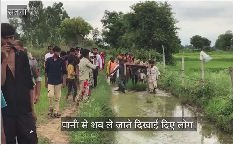 कीचड़ और लाचारी: सतना में पीएम के लिए शव ढोने को मजबूर ग्रामीण