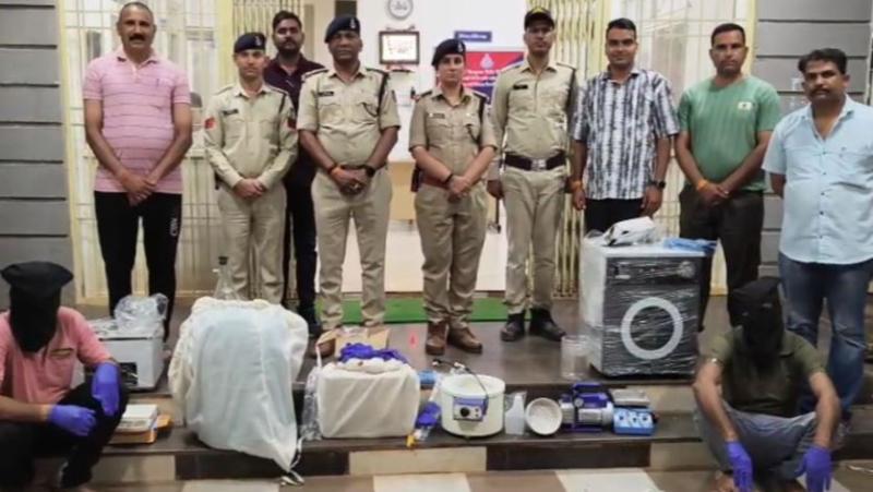 पुलिस ने बरामद की बिना नंबर प्लेट की 2 कारें और ड्रग्स फैक्ट्री के उपकरण
