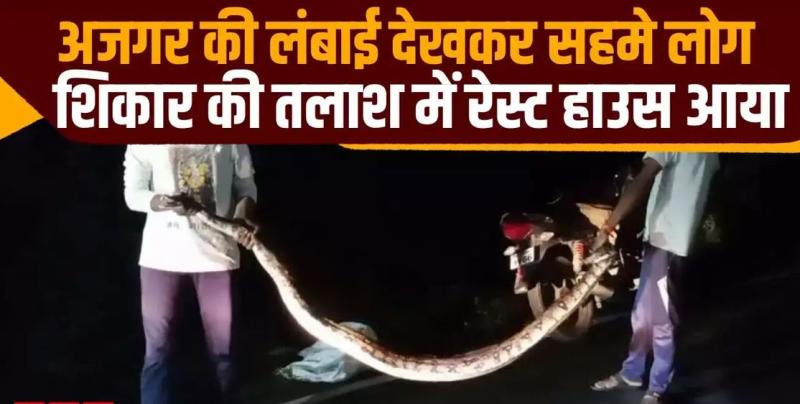 दरअसल, अजगर देखने के बाद वहां मौजूद कर्मचारियों ने इसकी सूचना सर्प मित्र खेमसिंह महाराज को दी। महाराज ने तत्काल मौके पर पहुंचकर अजगर का सूरक्षित तरीके से रेस्क्यू कर चांदनी के आगे जंगल में छोड़ दिया है। रात होने की वजह से रेस्क्यू थोड़ी दिक्कत भी आई। वहां कर्मचारियों में अफरातफरी की स्थिति रही है। यह इतना विशाल था कि किसी को आराम से निगल सकता था। शिकार की तलाश में आया 10 फीट लंबा अजगर, नजर पड़ते ही रेस्ट हाउस में आया भूचाल