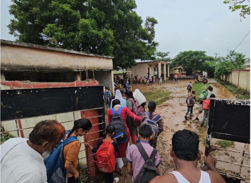 सड़क से लेकर कक्षा तक फैला पानी, अभिभावक बोले- बच्चों की सुरक्षा सबसे पहले
