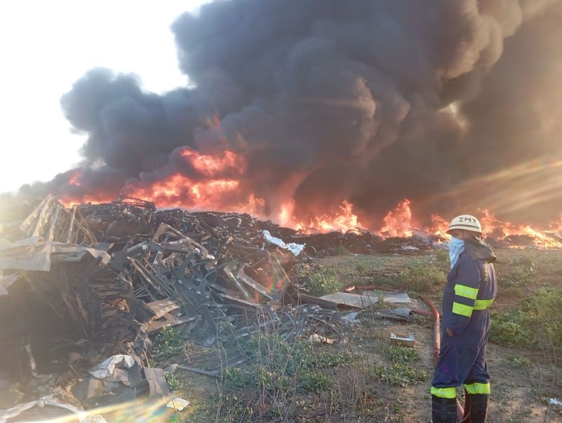 गुरुग्राम। मानेसर के कांकरोला गांव में सोमवार सुबह एक खुले स्क्रैप यार्ड में भीषण आग लग गई, जिससे इलाके में अफरातफरी मच गई। आग की लपटें काफी ऊंची उठ रही थीं और धुएं का गुबार दूर-दूर तक दिखाई दे रहा था। घटना की सूचना मिलते ही मानेसर फायर स्टेशन को तुरंत अलर्ट किया गया।