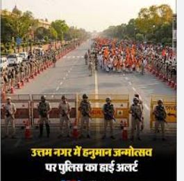 दिल्ली। हनुमान जन्मोत्सव पर बृहस्पतिवार को उत्तम नगर, जहांगीरपुरी और तुगलकाबाद में तनाव के बीच शोभायात्राएं निकाली गईं। हिंदू संगठनों की इन यात्राओं को लेकर दिल्ली पुलिस अलर्ट रही। इन जगहों पर कई बार हल्के तनाव के हालात पैदा हो गए थे, मगर अलर्ट पुलिस ने समय रहते हुए स्थिति को संभाल लिया था। पुलिस ने कई लोगों को हिरासत में लिया है। दिल्ली पुलिस के एक वरिष्ठ वरिष्ठ अधिकारी ने बताया कि कानून-व्यवस्था बनाए रखने के लिए इन इलाकों में बड़ी संख्या में सुरक्षाकर्मी तैनात किए गए थे। सीसीटीवी कैमरों, ड्रोन के जरिये शरारती तत्वों पर नजर रखी गई। हनुमान जयंती पर दो अलग-अलग इलाकों तुगलकाबाद और जहांगीरपुरी से हल्के तनाव की खबर सामने आई है। हालांकि दोनों ही जगहों पर पुलिस की सक्रियता के चलते स्थिति फिलहाल नियंत्रण में है। दरअसल, तुगलकाबाद इलाके में धार्मिक स्थल के पास से गुजर रही शोभा यात्रा के दौरान कुछ शरारती तत्व परिसर की छत पर नाचने लगे, जिससे हालात तनावपूर्ण पैदा हो गए। हालांकि सूचना पर पहुंची पुलिस ने हालात को संभाला और मौके पर तैनाती बढ़ा दी है और स्थिति पूरी तरह सामान्य बताई जा रही है। जहांगीरपुरी के डबल ई ब्लॉक में कुछ लोग बिना अनुमति शोभा यात्रा निकालने की कोशिश कर रहे थे। पुलिस के समझाने पर भी जब लोग नहीं माने तो कुछ लोगों को हिरासत में लिया गया। दिल्ली के उत्तम नगर में हनुमान जयंती के अवसर पर बृहस्पतिवार को शोभा यात्रा निकाली गई। पंचमुखी हनुमान भगवान की प्रतिमा के चरणों में दिवंगत तरुण की फोटो रखी हुई थी। कई लोगों ने पुलिस और आयोजकों की तारीफ की कि उन्होंने सुनिश्चित किया कि समारोह में किसी प्रकार की अव्यवस्था न हो। अधिकारियों ने बताया कि सांप्रदायिक सौहार्द सुनिश्चित करने के लिए जहांगीरपुरी में अमन समिति की बैठक भी की गई क्योंकि 2022 में इलाके में हनुमान जन्मोत्सव की शोभायात्रा के दौरान हुई हिंसा में पथराव और आगजनी की घटनाओं में पुलिसकर्मियों समेत कई लोग घायल हो गए थे।