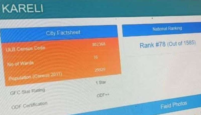 देश में 1585 नगर पालिकाओं में करेली को मिला 78वां स्थान, पिछले वर्ष था 227 वें स्थान पर