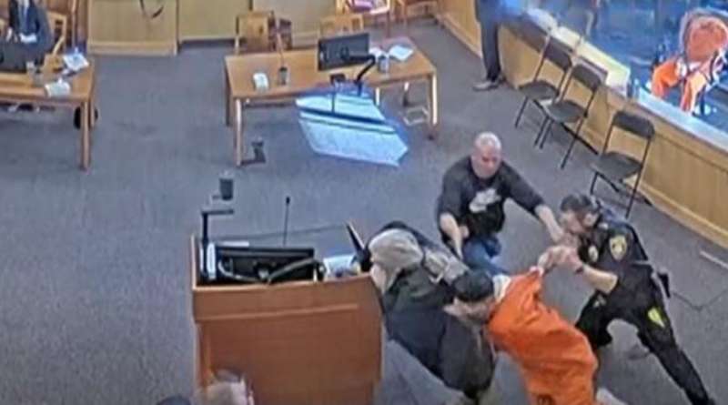 न्यू मेक्सिको में हत्या के एक संदिग्ध पर कथित तौर पर पीड़ित के चाचा और सौतेले पिता ने कोर्ट में हमला किया, ये पूरी घटना कोर्टरूम के वीडियो में कैद हुई है। वीडियो में मेक्सिको कोर्ट में हत्या के संदिग्ध पर पीड़ित के परिवार का हमला दिखाया गया है।