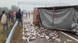 नई दिल्ली|दिल्ली-मेरठ एक्सप्रेसवे पर बुधवार दोपहर विजयनगर क्षेत्र में एक मालवाहक वाहन अनियंत्रित होकर पलट गया। वाहन में मछलियों से भरे आइसबॉक्स रखे थे, जो पलटते ही सड़क पर बिखर गए। एक्सप्रेसवे पर अचानक मछलियां फैली देखकर राहगीर उन्हें लूटने के लिए दौड़ पड़े। इससे लंबा जाम भी लग गया।प्रत्यक्षदर्शियों के अनुसार, मालवाहक वाहन दिल्ली से मेरठ की ओर जा रहा था। विजयनगर थानाक्षेत्र में चालक ने अचानक ब्रेक लगाया, जिससे वाहन असंतुलित होकर पलट गया। हादसे में चालक को गंभीर चोट नहीं आई, लेकिन सड़क पर बिखरी मछलियों के कारण यातायात प्रभावित हो गया। मछलियां सड़क पर गिरते ही कुछ लोग उन्हें उठाने के लिए दौड़ पड़े। हालांकि, छोटे हाथी के चालक और उसके साथियों ने लोगों को खदेड़कर स्थिति संभालने का प्रयास किया। इसी बीच वाहनों की कतारें लग गईं और एक्सप्रेसवे पर रफ्तार थम गई। सूचना मिलते ही पुलिस मौके पर पहुंची और स्थिति काबू करने में जुट गई।पुलिस ने मालवाहक को सड़क किनारे कराया और बिखरी मछलियों को ड्रम और आइसबॉक्स में भरवाया। कड़ी मशक्कत के बाद वाहन और ड्रम आदि को एक्सप्रेसवे से हटवाया गया। डीसीपी ट्रैफिक त्रिगुण बिसेन ने बताया कि पुलिस ने तत्परता दिखाते हुए कुछ ही समय में जाम खुलवा दिया। मछलियों से भरे आइसबॉक्स हटाकर मालवाहक को सुरक्षित स्थान पर भेज दिया गया है।