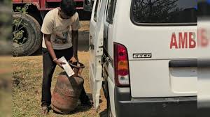 एम्बुलेंस बनी गैस सिलेंडर ढोने का जरिया