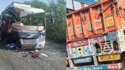 बस-ट्रक की भिड़ंत में 3 की मौत, 42 घायल