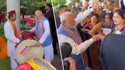 सिंगापुर में पीएम मोदी का जोरदार स्वागत......महिला ने बांधी राखी
