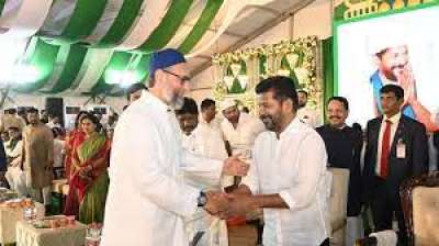 हैदराबाद। लोकसभा चुनाव से पहले तेलंगाना के मुख्यमंत्री रेवंत रेड्डी और एआईएमआईएम चीफ असदुद्दीन ओवैसी एक साथ दिखाई दिए। इफ्तार पार्टी के दौरान मंच पर ओवैसी और रेवंत रेड्डी ने...