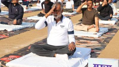 मंत्री उदय प्रताप सिंह राजमार्ग में आयोजित सामूहिक सूर्य नमस्कार कार्यक्रम में हुए शामिल