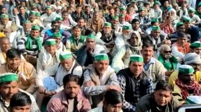 किसानों की मांगों को लेकर विकास भवन पर भाकियू का धरना