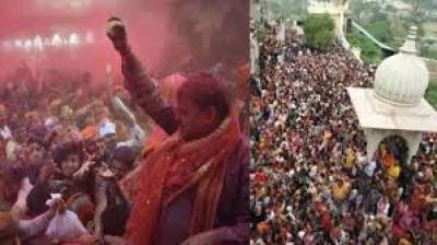 बरसाना में श्रद्धालुओं पर लड्डुओं की वर्षा, उत्सव का भव्य दृश्य