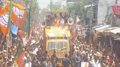 सीएम योगी का रोड शो, बोले- सपा को कांग्रेस के साथ गठबंधन की सजा मिलनी चाहिए