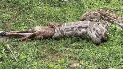 गांव के पास 15 फीट अजगर की मौजूदगी से फैला दहशत का माहौल, सुरक्षा बढ़ाई गई