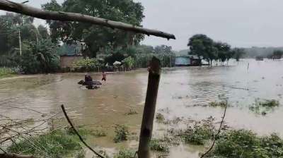 चंदौली में नहर टूटने से गोधना गांव जलमग्न, नावों से हो रहा आना-जाना