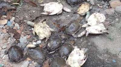 बिलासपुर: रतनपुर स्थित महामाया मंदिर कुंड के किनारे 30 कछुए मृत मिले। सभी जाल में फंसे हुए थे। घटना सामने आने के बाद हड़कंप मचा हुआ है। कछुओं की मौत...