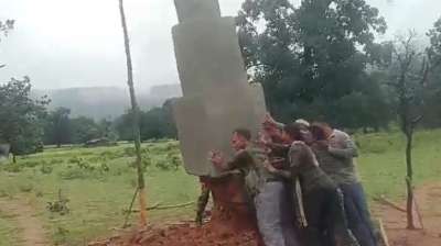 जवानों ने नक्सलियों के शहीद स्मृति स्मारक को ध्वस्त किया