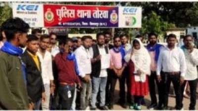 महिला को निर्वस्त्र कर पीटने का आरोप लगाते हुए भीमराव रेजीमेंट ने किया थाने का घेराव