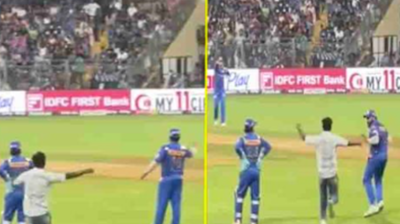 वानखेड़े के मैदान पर सुरक्षा कवच को भेदकर एक फैन रोहित शर्मा से मिलने पहुंचा। फैन को अचानक से अपनी ओर भागता हुए देख हिटमैन एक बार को बुरी तरह...