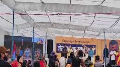 आप का कैंपेन सॉन्ग लॉन्च मंच पर लगाई गई सीएम केजरीवाल की कुर्सी